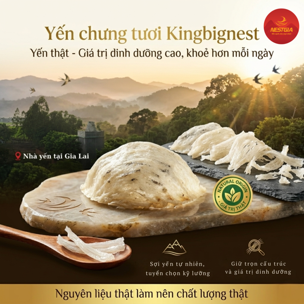 Từ nguồn Yến rừng Gia Lai đến từng hũ yến Kingbignest hoàn chỉnh, NestGia mong muốn mang đến những sản phẩm yến nguyên chất – chuẩn mực – đáng tin cậy, góp phần nâng tầm giá trị yến sào Việt.