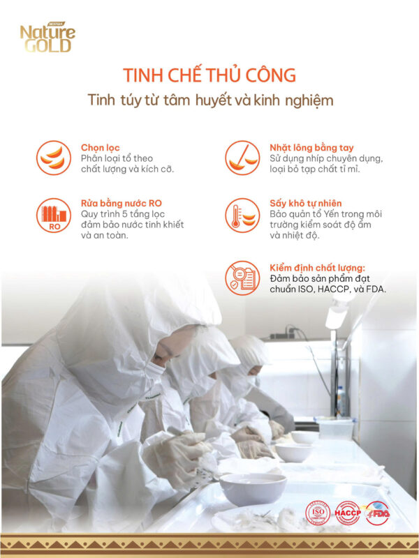 • Quy trình sản xuất đảm bảo: Sản xuất tại Nhà máy Yến sào NestGia theo quy trình hiện đại, kiểm soát nghiêm ngặt, kiểm định rõ ràng về hàm lượng và giá trị dinh dưỡng đúng như công bố.