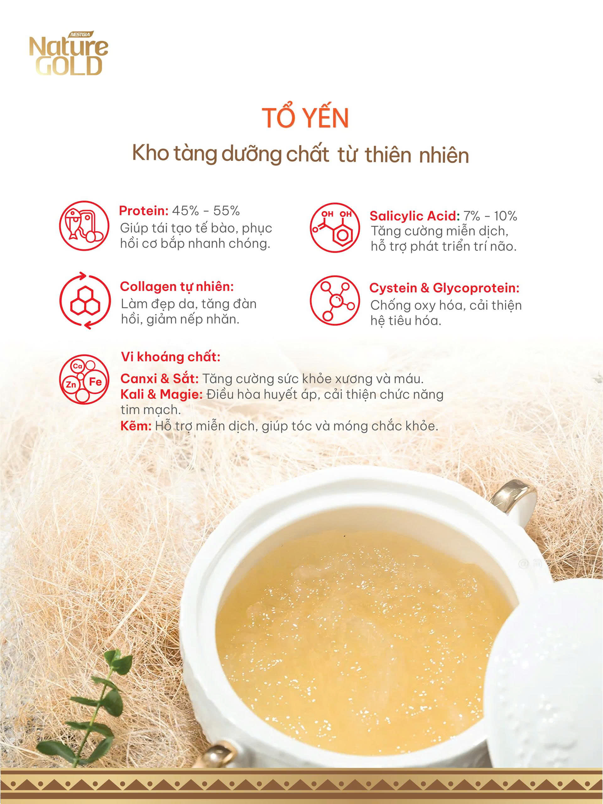 NatureGold – Tinh hoa yến sào từ thiên nhiên: Mang dưỡng chất tinh túy từ đại ngàn đến mọi gia đình Việt.